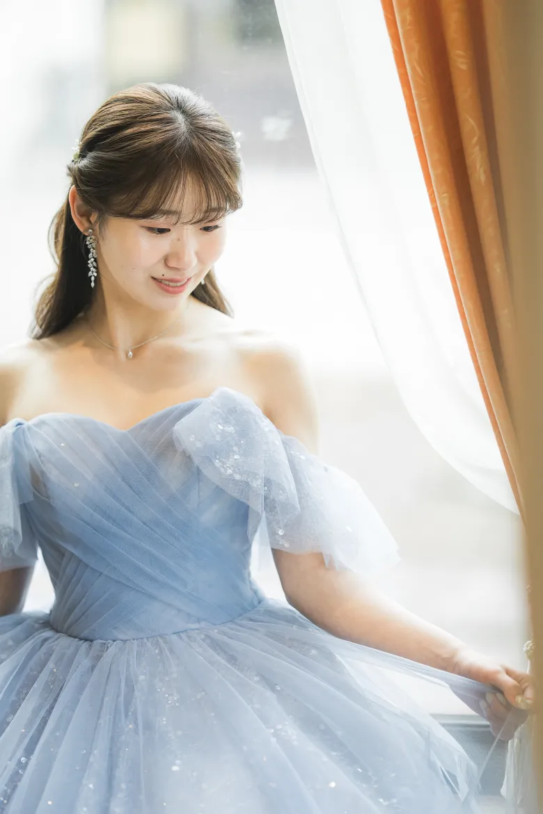 花嫁さまのカラーに合わせて、結婚写真をより華やかにより美しく。 笑顔で幸せに過ごしていただける一日になるよう心を込めて、専門ヘアメイクが豊富な美容アイデアと技術でサポートさせていただきます。