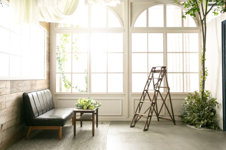 大きな窓から自然光が差し込むスタジオ
