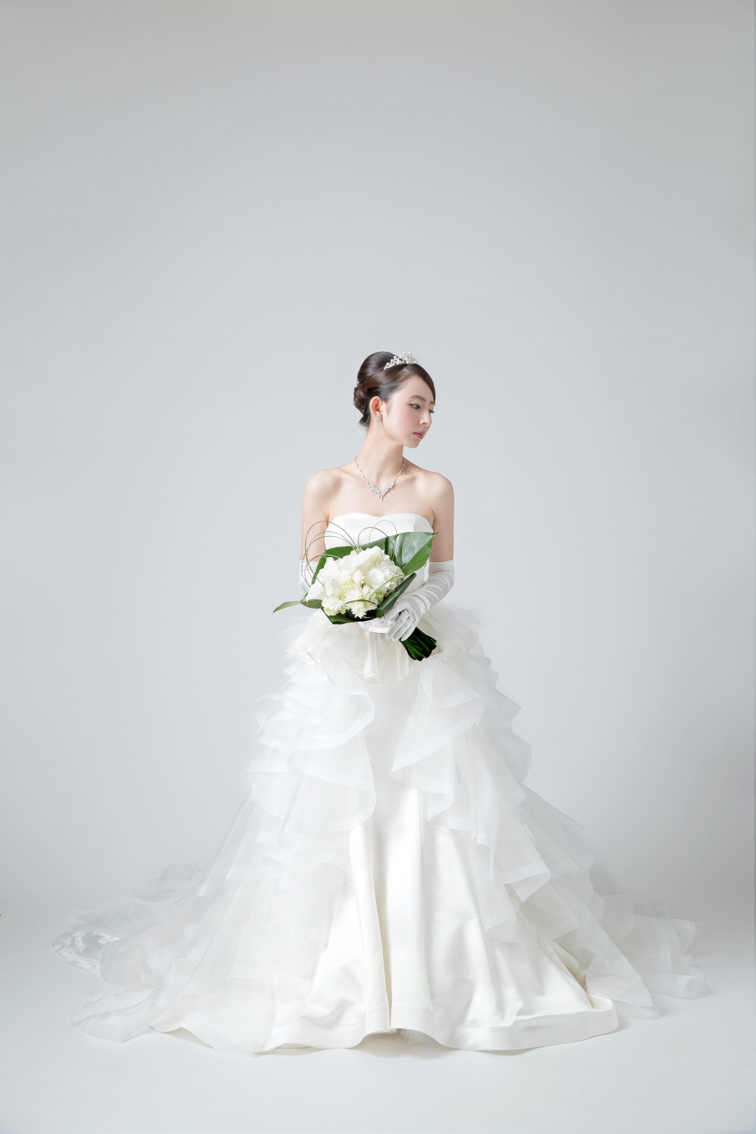 ポイントにクチュールをあしらった薄手の素材が爽やかさを軽やかに演出。サマーウェディングにもピッタリの一着です。