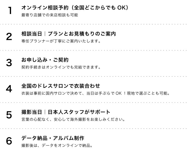 人気のフォトグラファーから専属のヘアメイクまで、多くの日本人スタッフが在籍。言葉の心配なく、安心して海外撮影をお楽しみいただけます。美しい自然と光、そして確かな技術が織りなす“本物の一枚”を、特別な価格で。