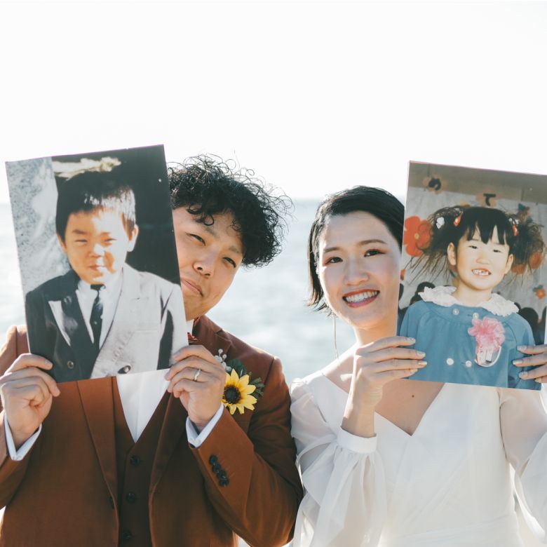 おふたりの子ども時代と一緒に撮影すれば、成長を感じられる感動的な写真に
