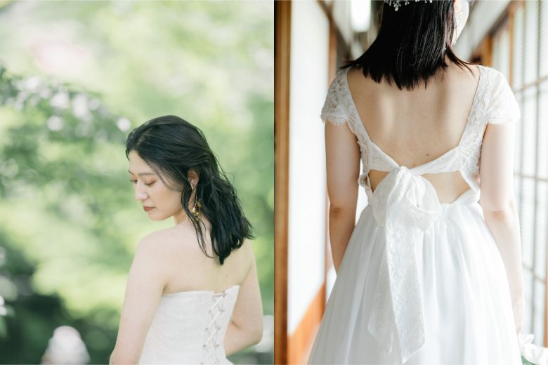 「自分らしさを大切にしたい」「作り込みすぎない自然体が好き」という花嫁に選ばれているのが、あえて髪をまとめないダウンスタイル。ミディアム・セミロングは軽さが出やすく、重たく見えにくいのが特徴です。