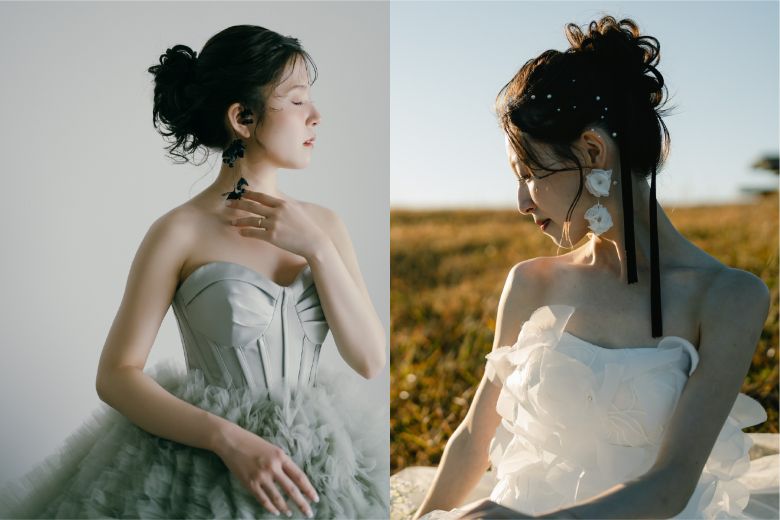 また、髪のボリュームが適度なので、ティアラや生花などのヘッドドレスが埋もれずに映えるのも大きな魅力。アレンジの幅広さと、主役級アクセサリーとの相性の良さを兼ね備えた、まさにウェディングに理想的な長さです。