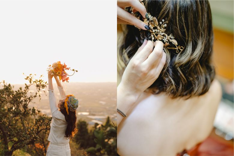 「長さが足りなくて理想のアレンジができないかも……」と心配なミディアム・セミロングの花嫁様にこそ、ぜひ取り入れてほしいのがヘアアクセサリー・小物を主役にしたスタイリングです。シンプルなヘアでも、小物次第で一気に花嫁らしい印象に。