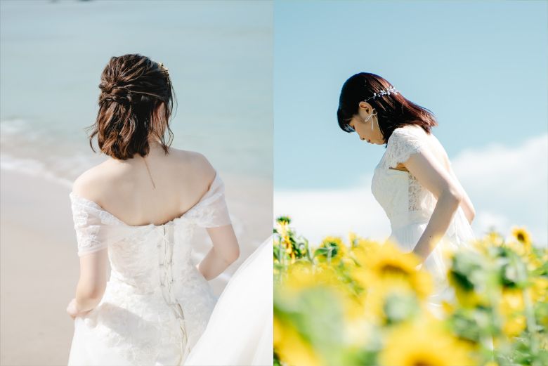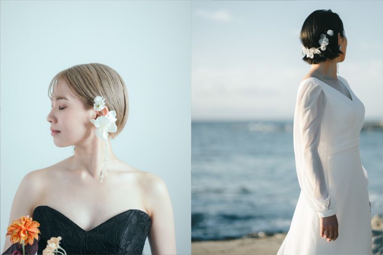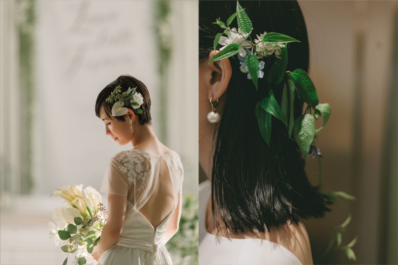 結婚式や前撮りは、一生に一度の大切な節目。短めのレングスだからこそ叶う、自分らしく自然体な花嫁姿を大切にしながら、理想のヘアスタイルを見つけてください。