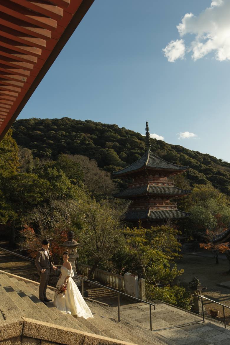 自然豊かな山間に位置する寺院。本堂は神戸市内で唯一の国宝の建造物。1300年以上の時を経て今に残る極めて貴重な遺構です。仁王門や三重塔など、見どころがたくさんの境内をめぐりながら撮影をお楽しみいただけます。春は桜、秋は紅葉の名所としても有名で、多くの人がその美しい景色を見にこの場所を訪れます。