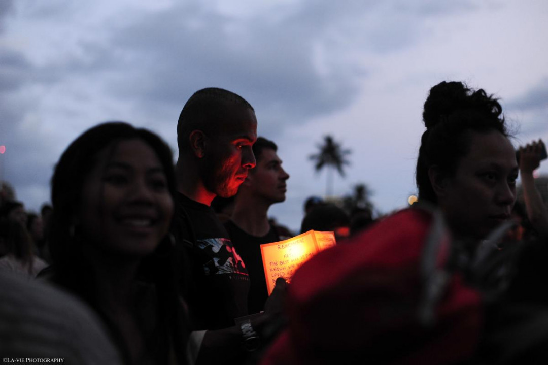 それぞれのメッセージを灯篭に書いてアラモアナビーチに流します。