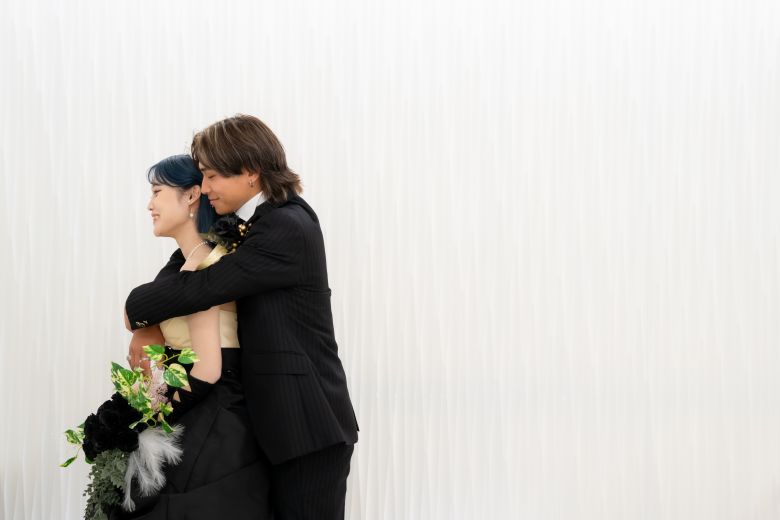普段おふたりではなかなかされないバックハグを記念にしてもらいました。