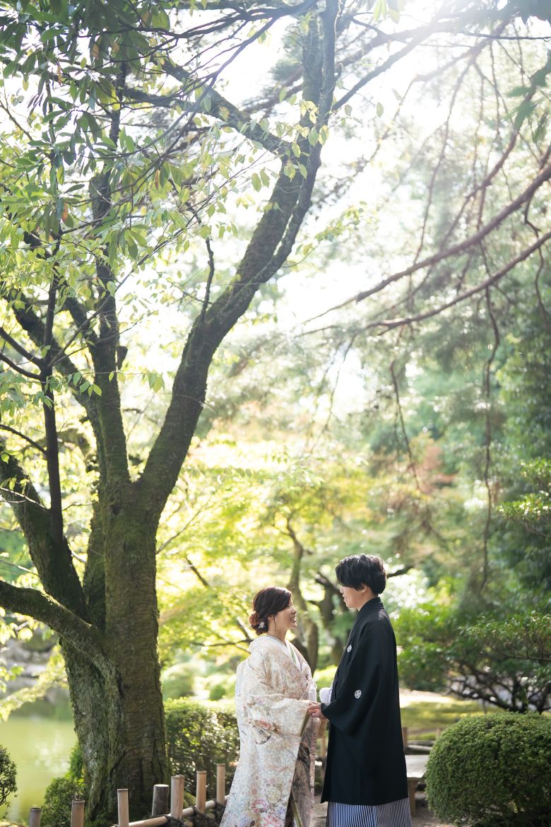 きれいな緑に囲まれてとてもふたりが映えるお写真に!
