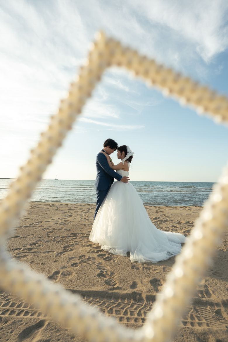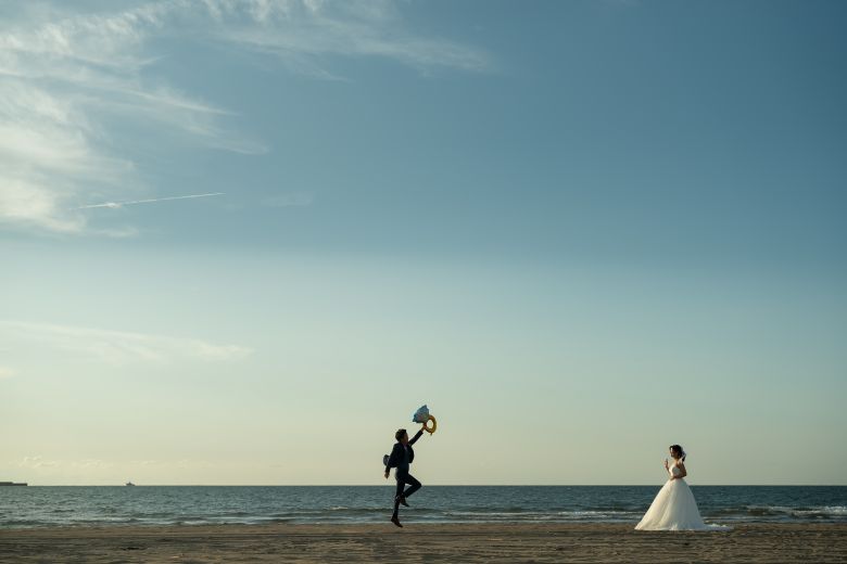 きれいな夕日をバックにおふたりにはゆっくり散歩してきてもらいました。ありがとうございました。