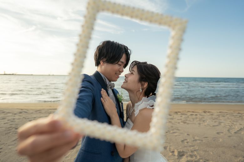 兼六園の次は洋装で海撮影かわいい写真立てを使って!!