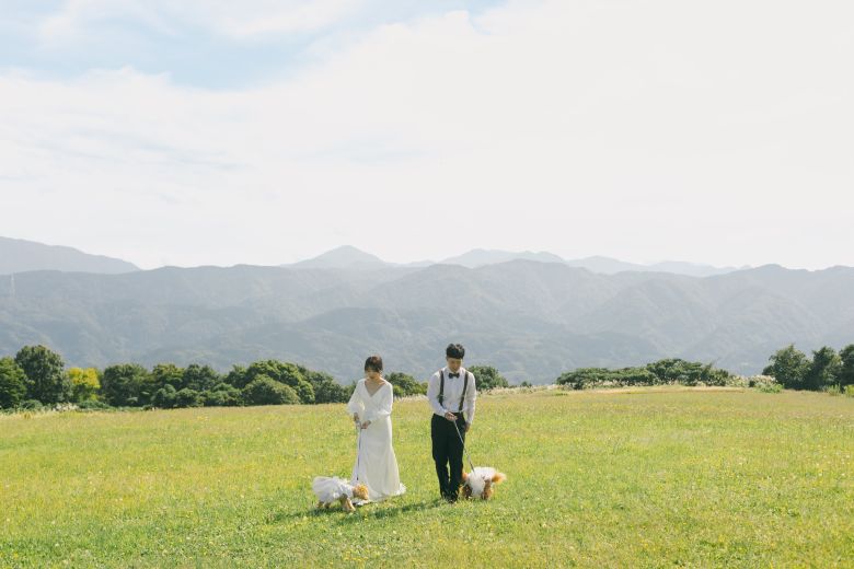 かわいいおふたりにかわいい二匹ワンちゃんで無邪気に遊んでもらいました。