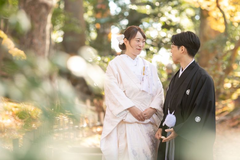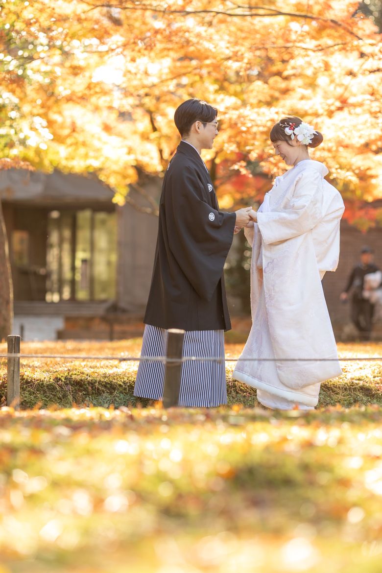 おふたりをきれいな紅葉が包んでくれてるような雰囲気で一枚!