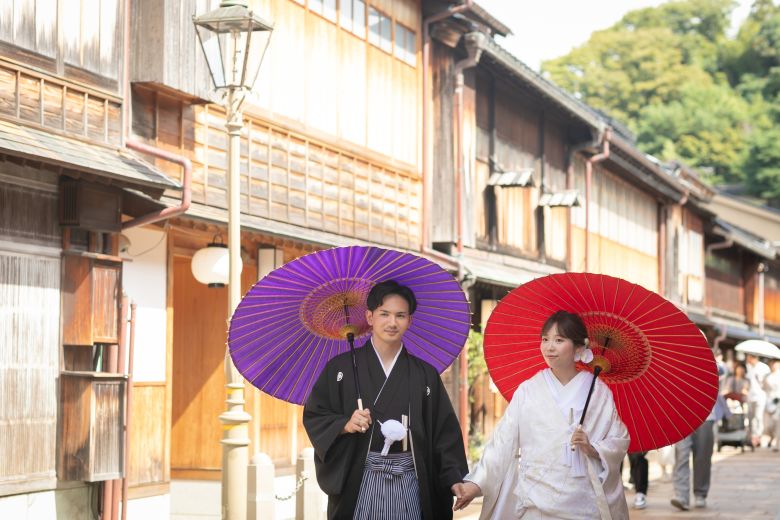 結びに東茶屋街を散策しているおふたりの瞬間をパシャリ