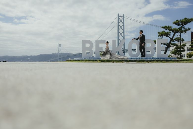 さっきの門をくぐるとBEKOBE 明石海峡大橋をバックに撮れる良いロケーションです!