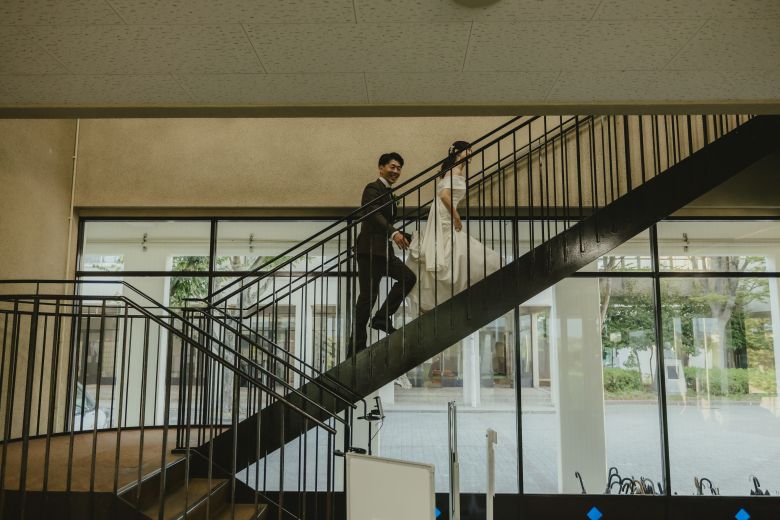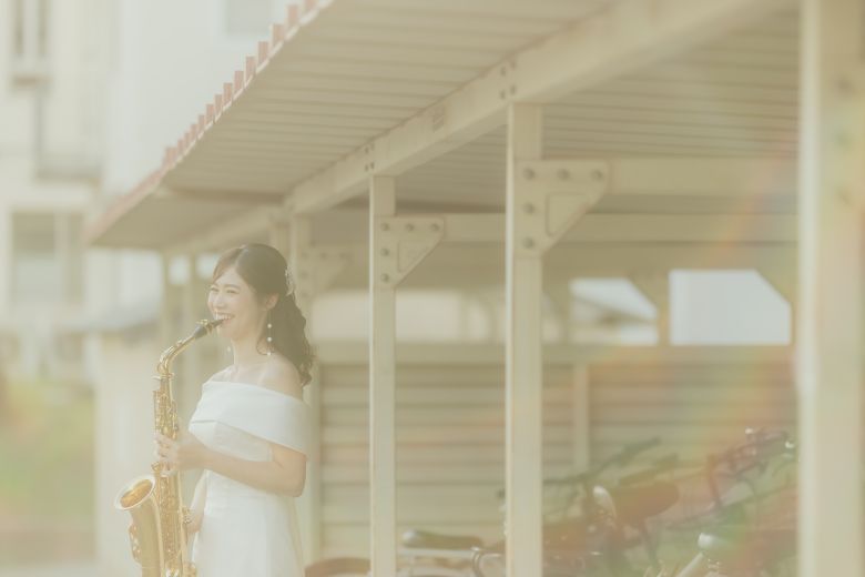 高校生の頃は吹奏楽部だった新婦様。ソロパートなども担当もしていたみたいです! いつも練習していた場所で記念に!