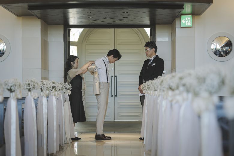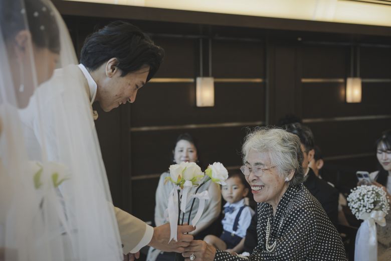 チャペル撮影では、特にお世話になったご親族様を招待しました。また、ファミリーミートも実施することで緊張している新郎新婦様のお顔がいつものようにほぐれました