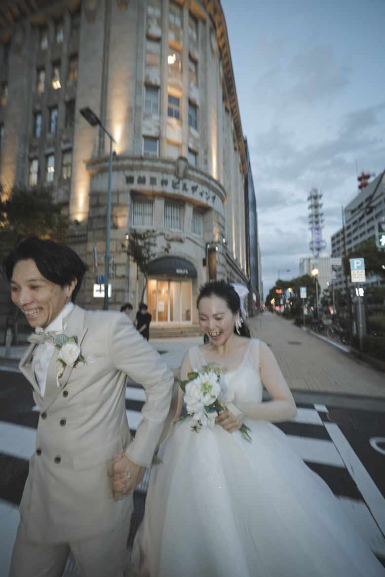 衣装をチェンジして旧居留地の街並みを楽しみながらパーティ会場へ移動です