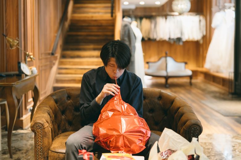 新婦さんのお支度中に頑張って撮影に使う風船を膨らまします。