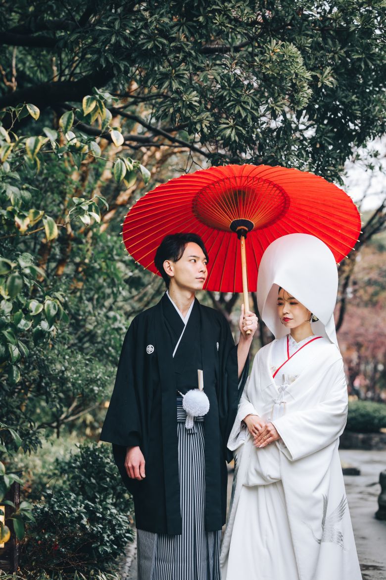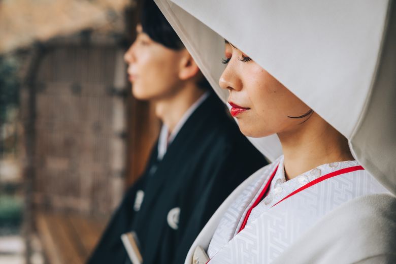 綿帽子は、ウェディングベールと同じような役割があります。日本の伝統を感じられる格式高い婚礼衣装です。