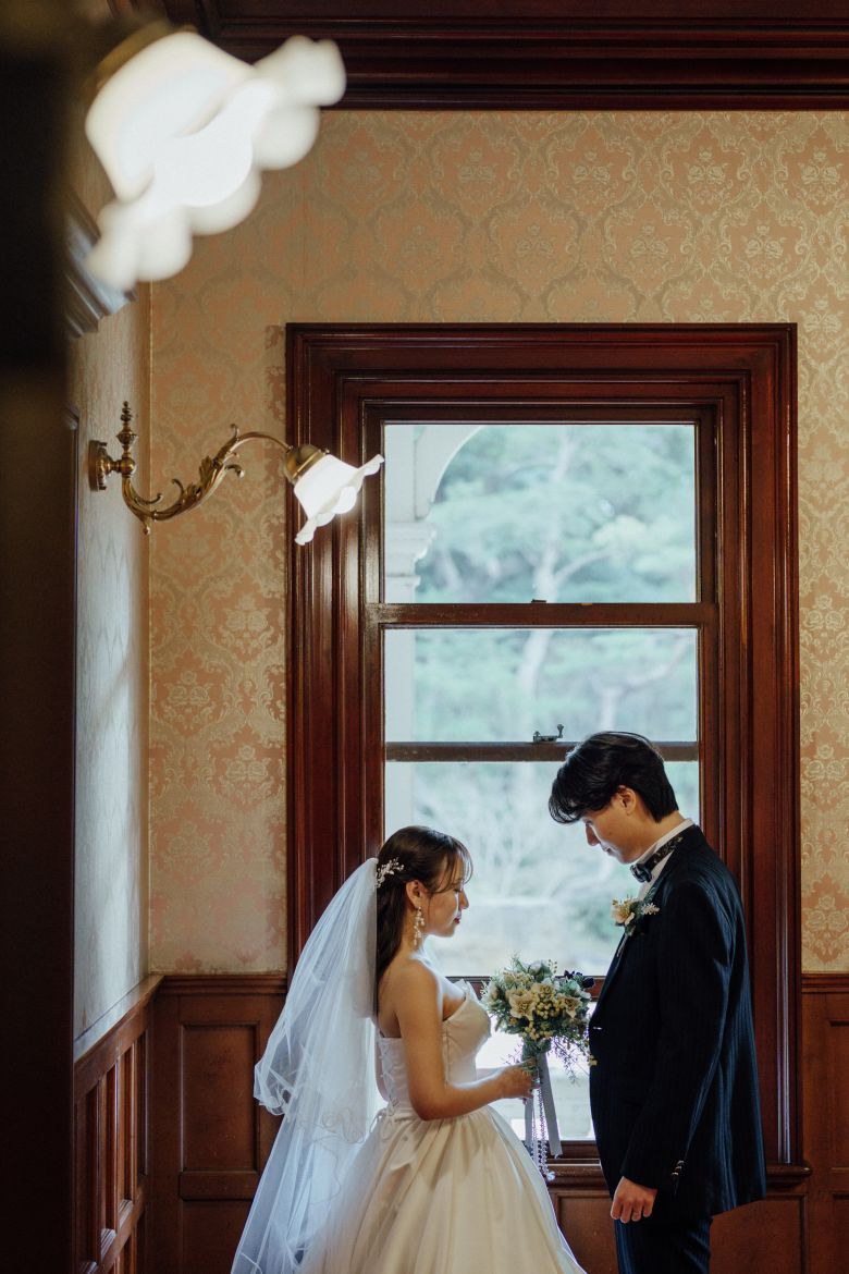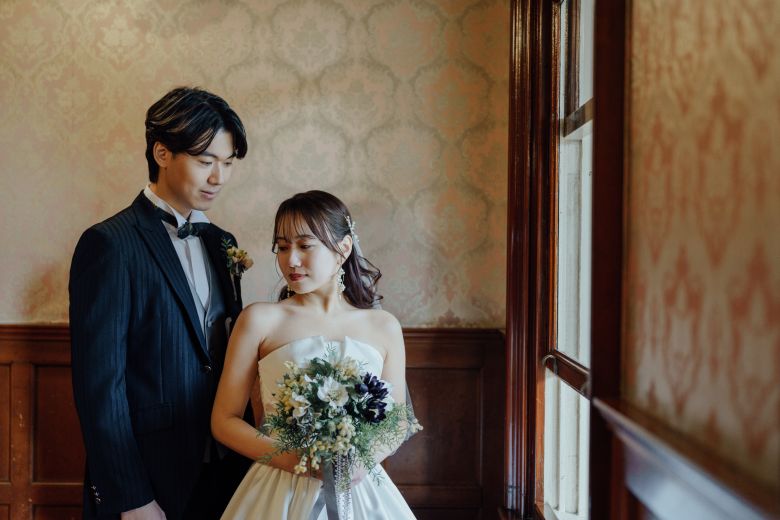 Shooting Report ひとつのロケ地で、和装と洋装 どちらも違った雰囲気で撮影ができるのが魅力です✨ 撮影時期は2月と、景色が落ちついたトーンになるのも素敵でした! Photo by myu この記事をシェアする facebook twitter line この撮影の着用衣装 Snowdrop 名古屋の前撮り・フォトウェディングをもっと知る Nagoya Studio