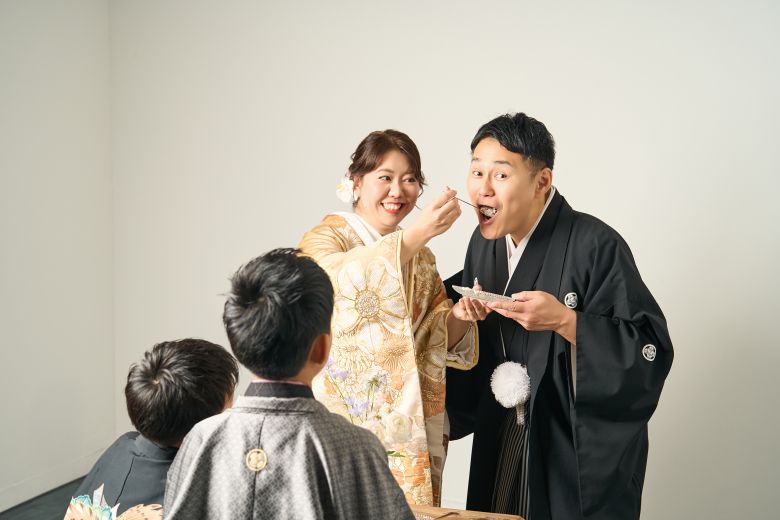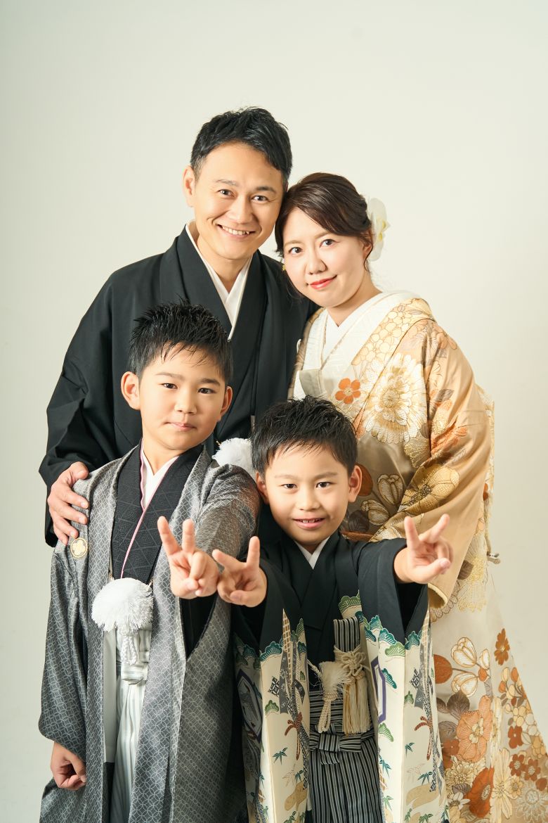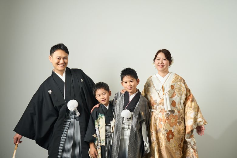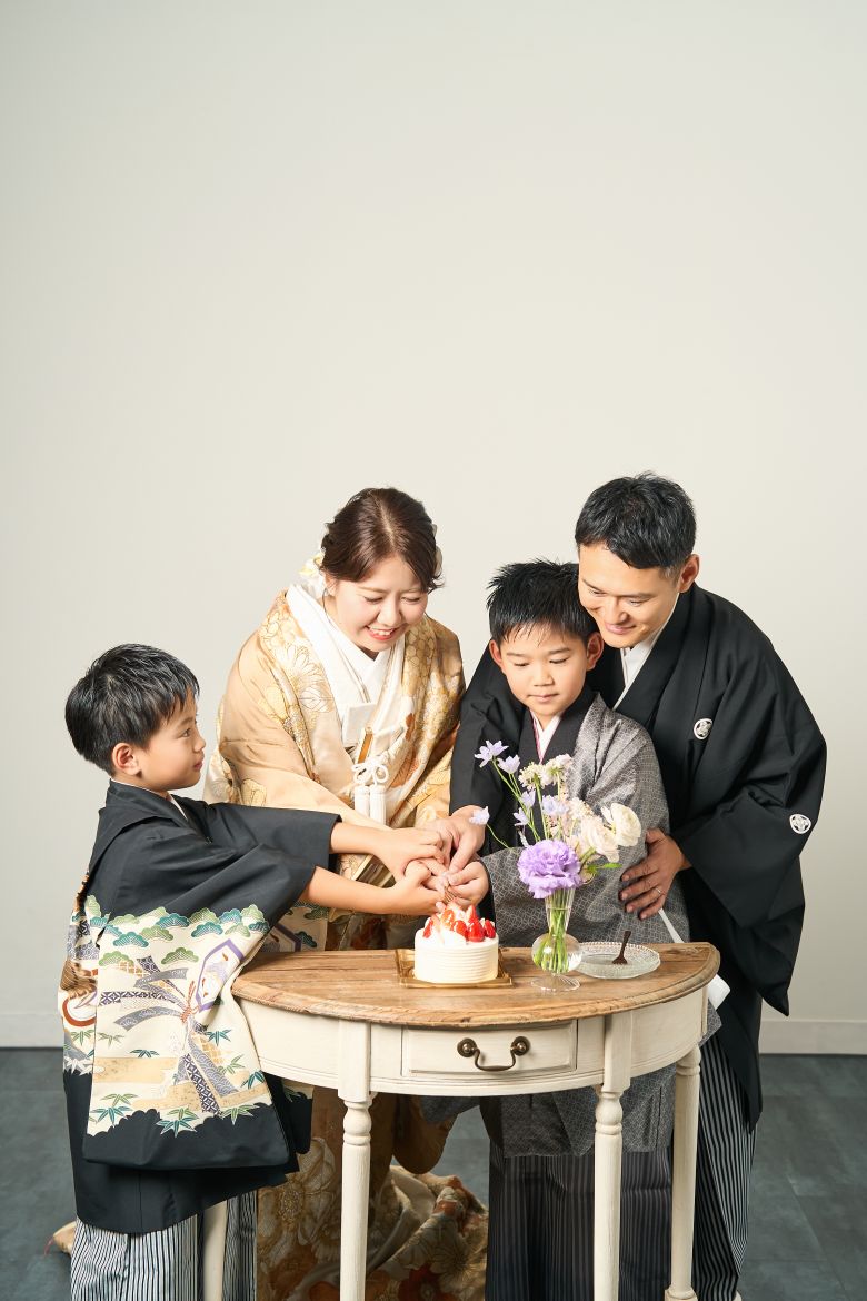 スタジオ撮影では、ご家族みなさまで和服をまとい、あたたかく穏やかなひとときを。