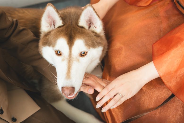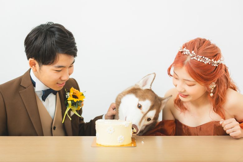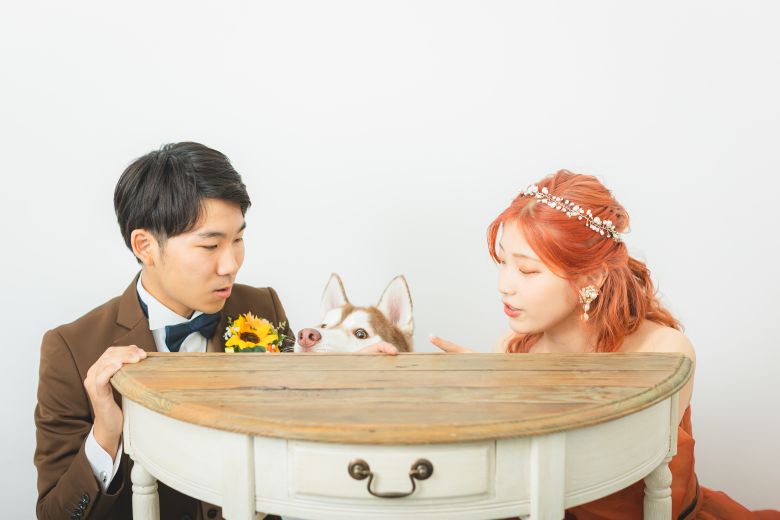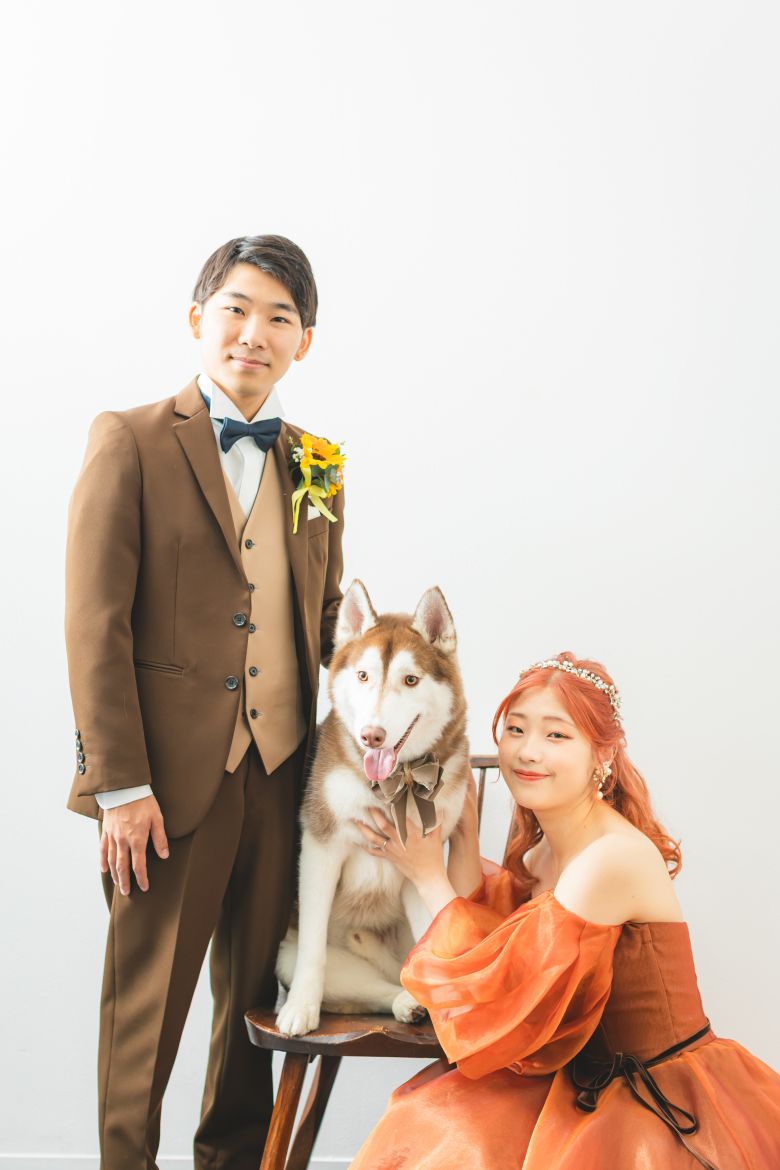 カラードレスでは、お二人の愛するわんちゃんと撮影