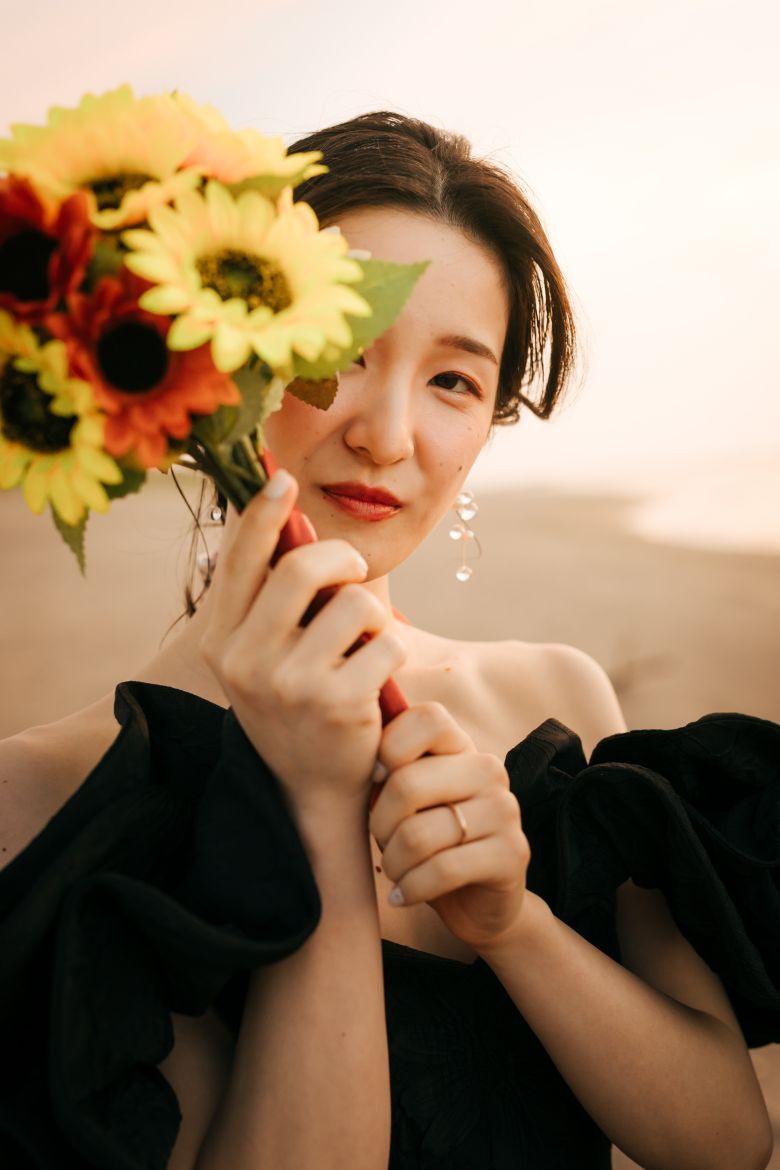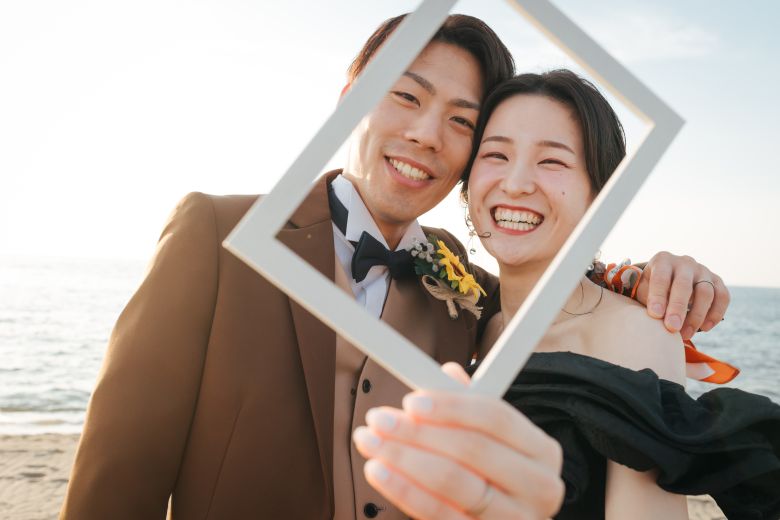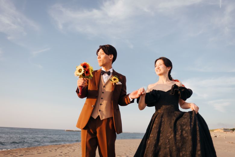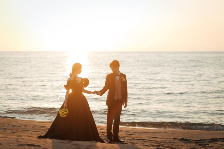 この日の夕日もとても綺麗でおふたりを包みこむ暖かい夕日でした。