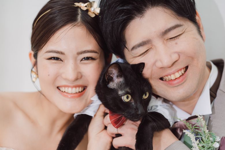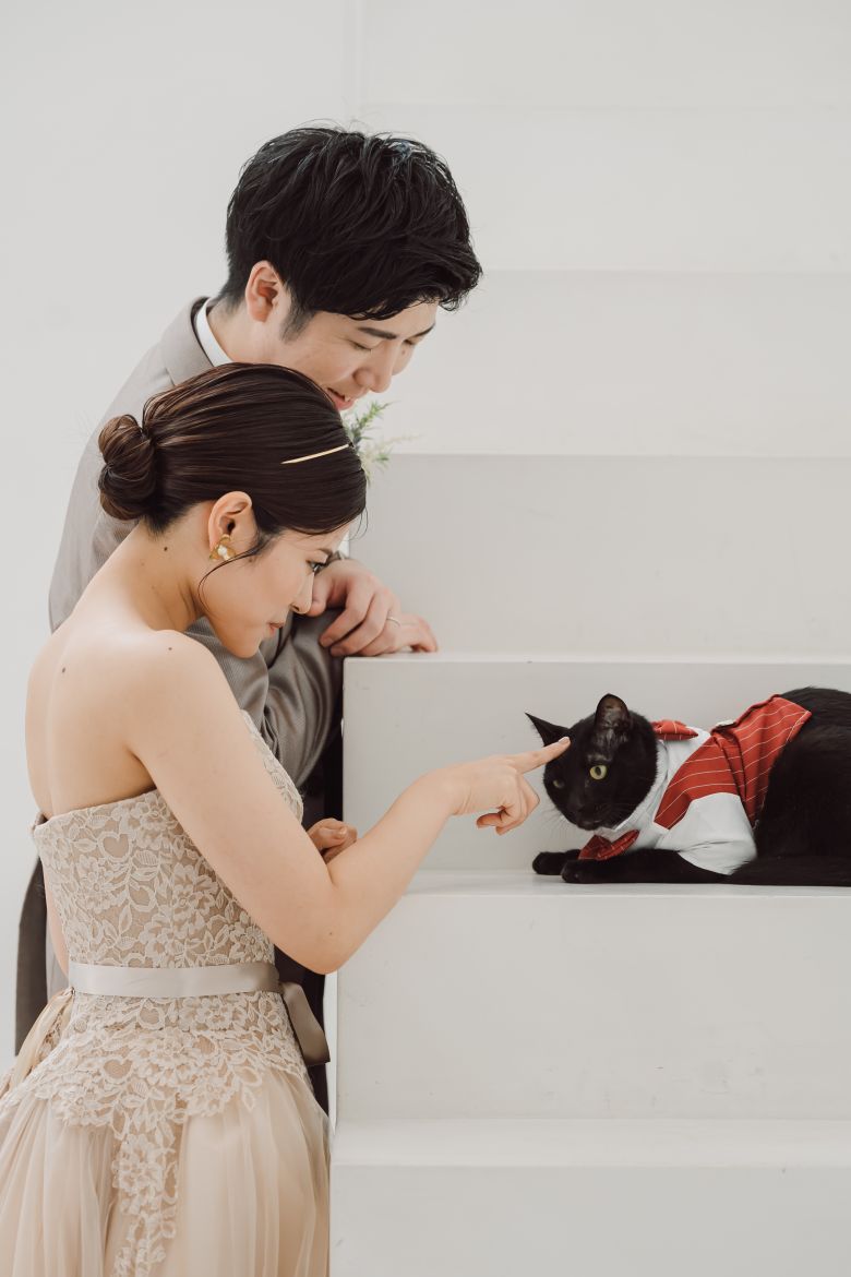 お二人と一緒に猫ちゃんもタキシードへお着替え。