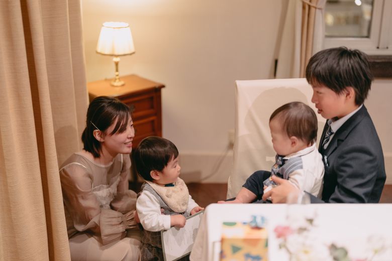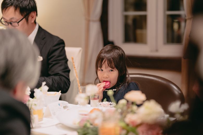 ご新郎ご新婦様のご提案で、お子さまがいるご友人を招待した幸せいっぱいの披露宴です❀˖°