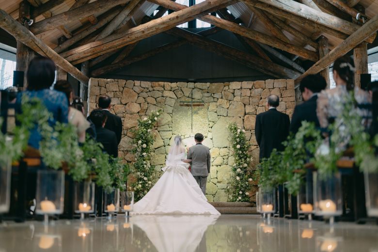 芸術家が愛した石と光が織りなす、石彩の教会での挙式。