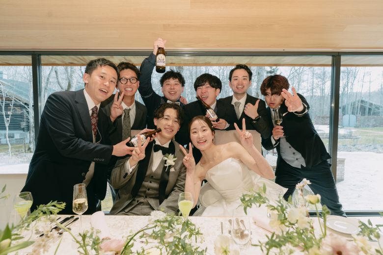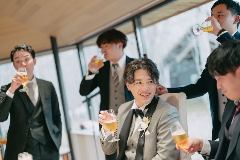 お次はご新郎様のご友人と。 ワイワイした写真が撮りたい!