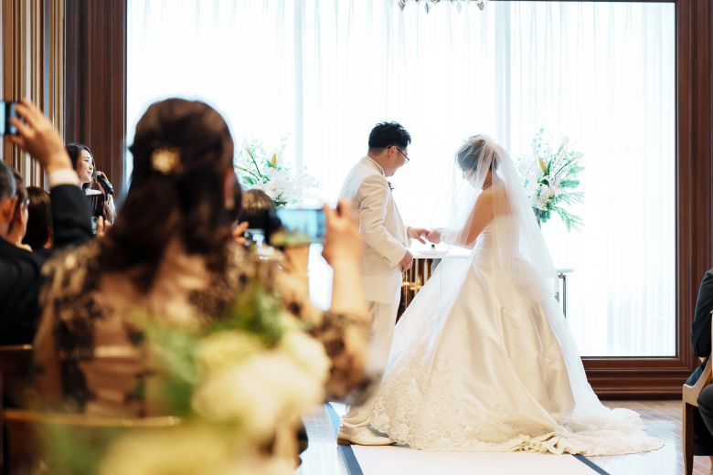 都会に佇むレストランで結婚式💒🎊 まずは指輪の交換です✧˖°