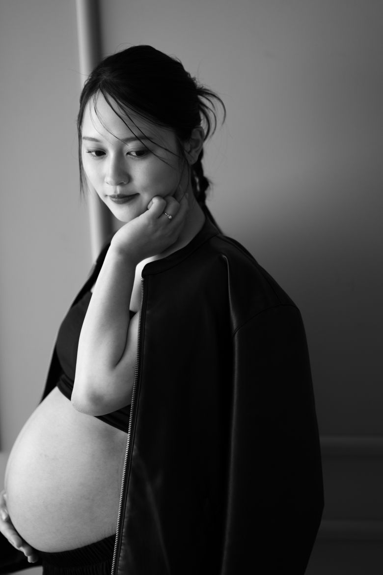 おしゃれなマタニティフォトをご紹介! まずはスカジャンを羽織ってシックに決めました★