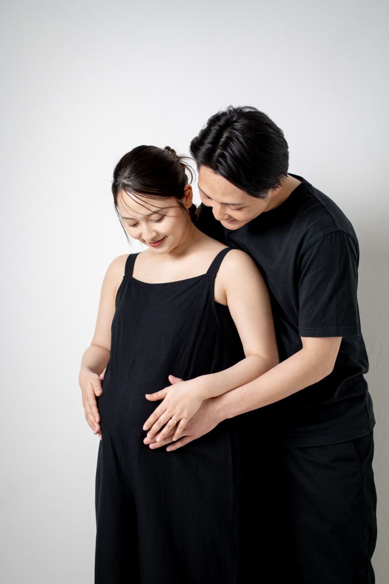 マタニティフォトに似合うのはご夫婦様のペアルック!どんな格好をして撮影するかお二人で相談してみてください。きっとワクワクが止まりませんよෆ⸒⸒