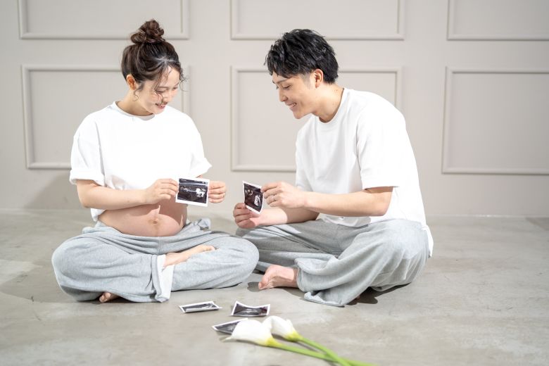 エコー写真を広げて、赤ちゃんの誕生を楽しみに待つパパとママ。 赤ちゃんが大きくなった時にこんな写真を見たらうれしい気持ちになりますよね*^^