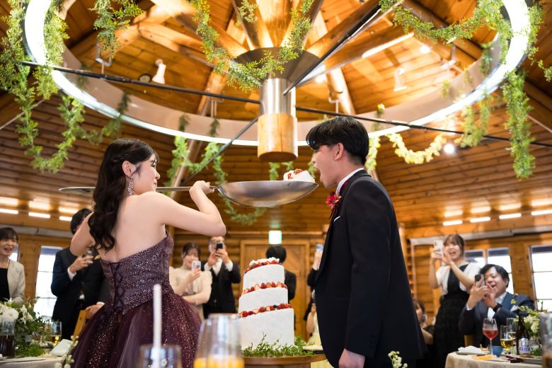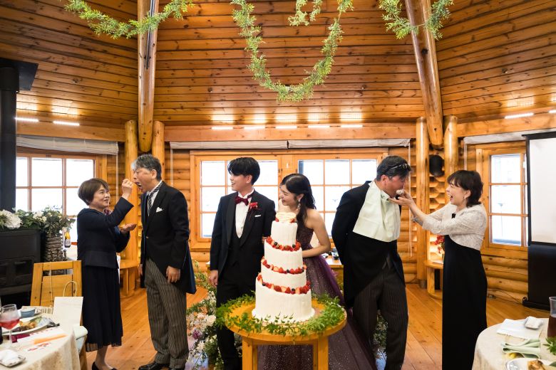 ケーキバイトはおふたりともご両親を指名し、お母様からお父様へ同時にあーん! 楽しそうでステキなお写真です♪