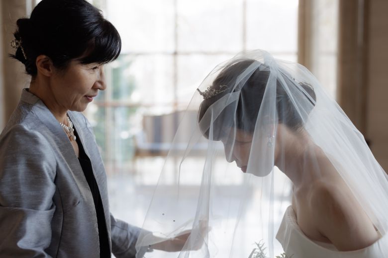 花嫁が家を出る前、お母様が娘にしてさしあげる『最後の身支度』といわれるヴェールダウン。 心に残る大切な写真°˖✧
