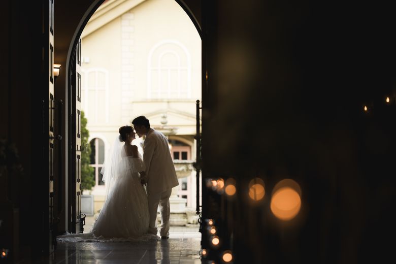 屋外に繋がる教会の扉を開けて、ロマンチックなお写真も♡