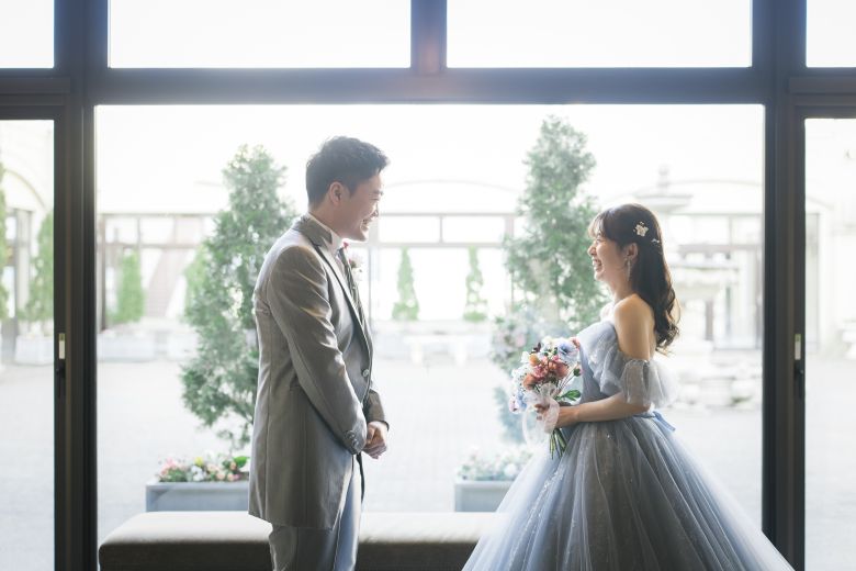 カラードレスのファーストミート。 初めて見るお互いの姿に笑みがこぼれる素敵な瞬間でした。