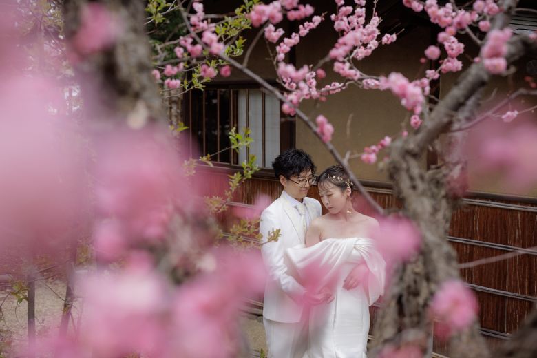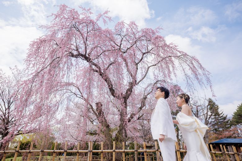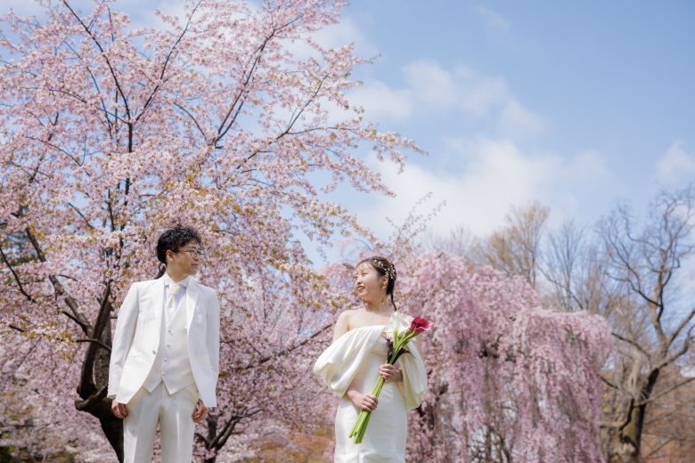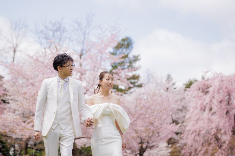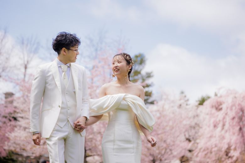 ピンク色の桜には洋装も和装も似合うから衣装選びもたのしい!