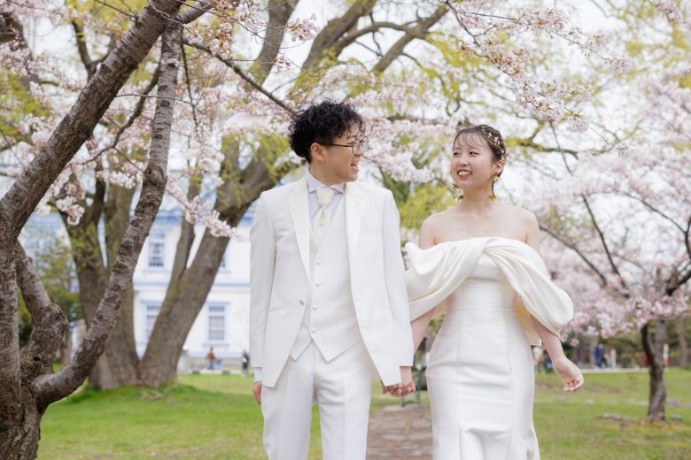 ウェディングドレスが似合う美しい北海道ロケーションから、歴史的な建物や街並みまで、豊富なロケ地からお客さまのお好みの場所をお選びいただけます。札幌の多彩な魅力を楽しめる全撮影データがセットになったプランです。あたり一面が薄ピンク色になるこれからの季節は一段とキレイでおすすめです!