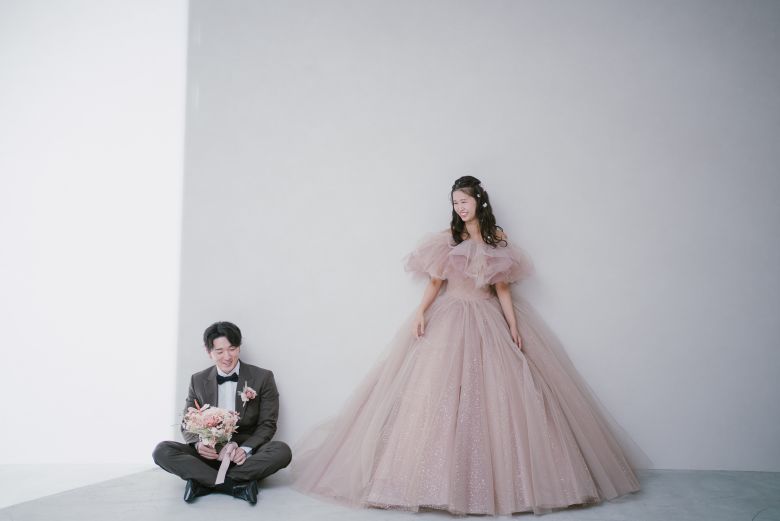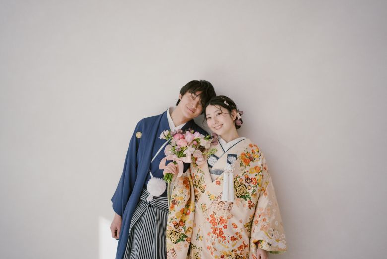 ウェディングドレスも和装も楽しみたい方におすすめ!より写真を美しく仕上げるシンプルで流行りに左右されない本格スタジオでの撮影。快適な屋内での撮影は移動も少なく、安心して撮影を楽しんでいただけます。大切なご家族と一緒に撮影も可能です。