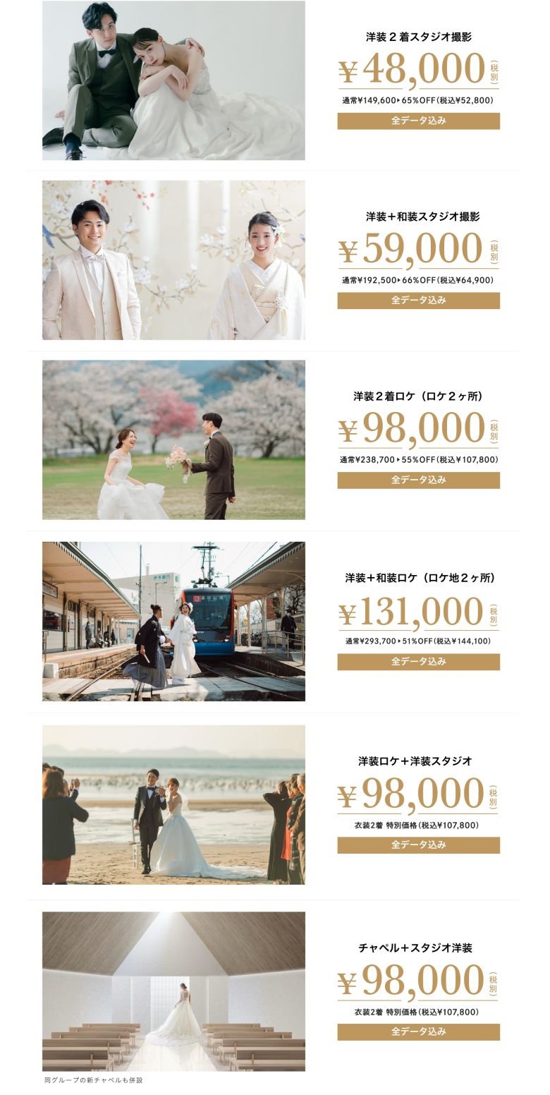 当日ご成約で基本撮影料 最大65%OFF