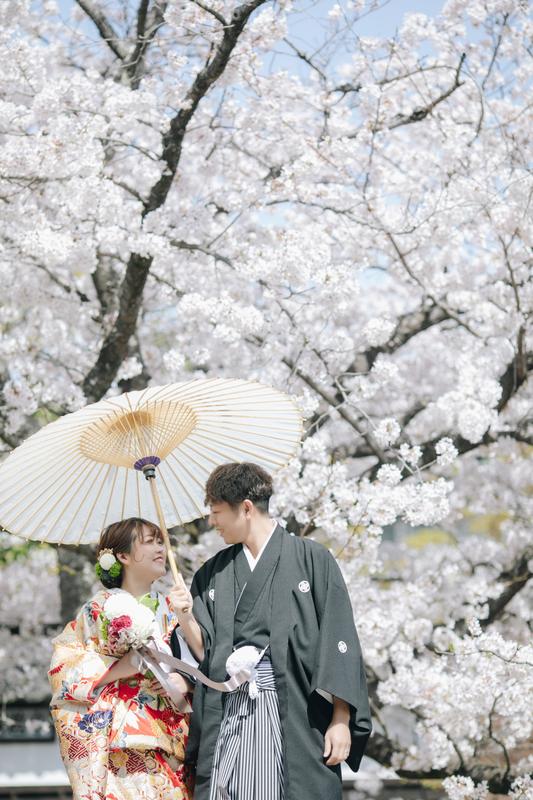 ウェディングドレスも和装も楽しみたい方におすすめ!ドレスが美しく映えるクラシカルな建築物や自然豊かなロケーション、歴史と文化を感じる和のロケーションまで、多彩な魅力を楽しめる全撮影データがセットになったプランです。どの季節でも美しい結婚写真が残せます。