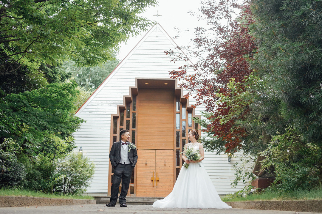大宮の地で30年以上愛される独立型の本格木造チャペル。森の中に静かに佇む溢れるチャペルは、香しい木の薫りとステンドグラスの柔らかな光が満ちた荘厳な空間となっています。多くのカップルを見守ってきた木の温もり溢れるチャペルで、おしゃれな大人ウエディングが叶います。