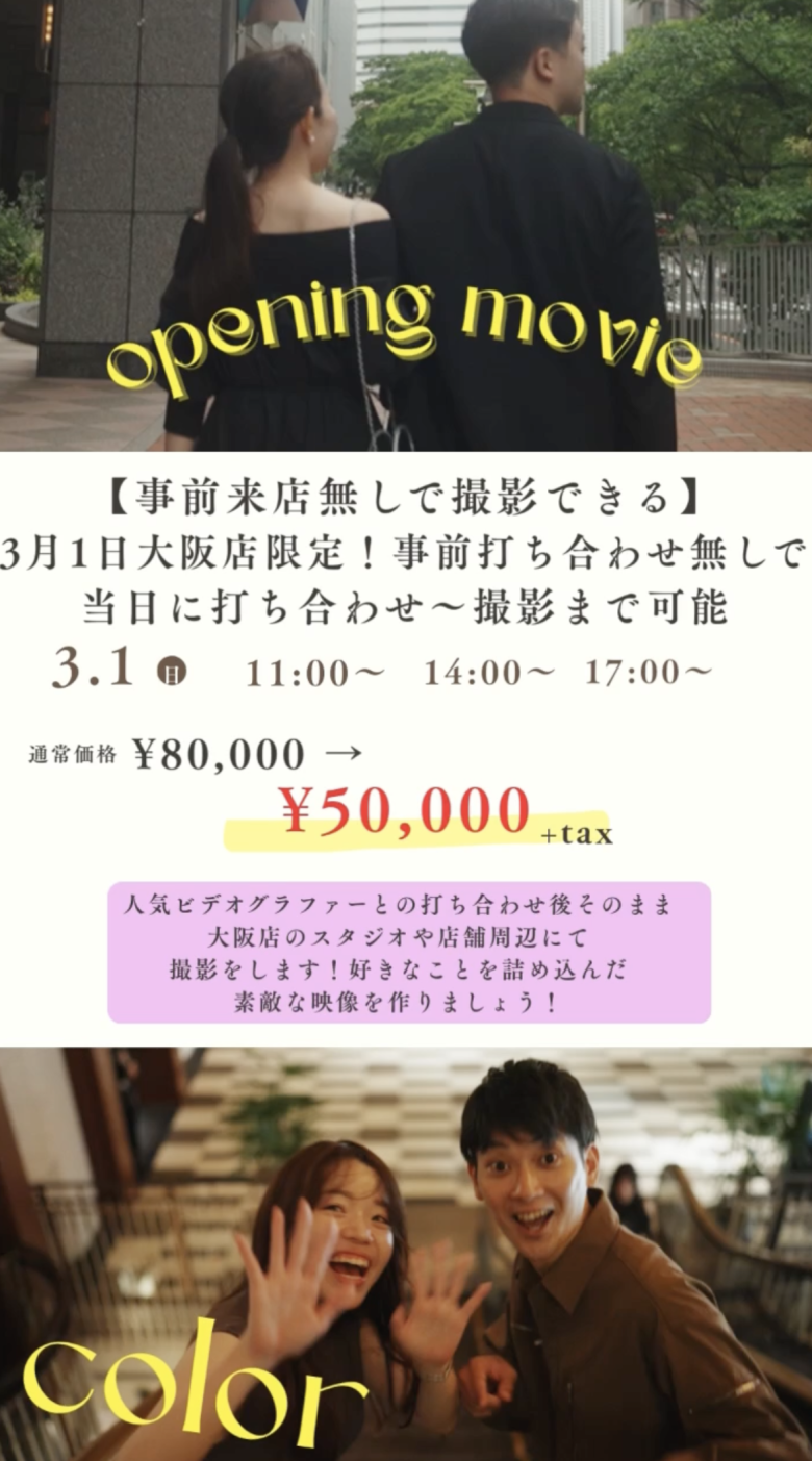 【事前来店なしで撮影できる】3月1日大阪店限定!事前打合せなしで当日に打合せ〜撮影まで可能です!