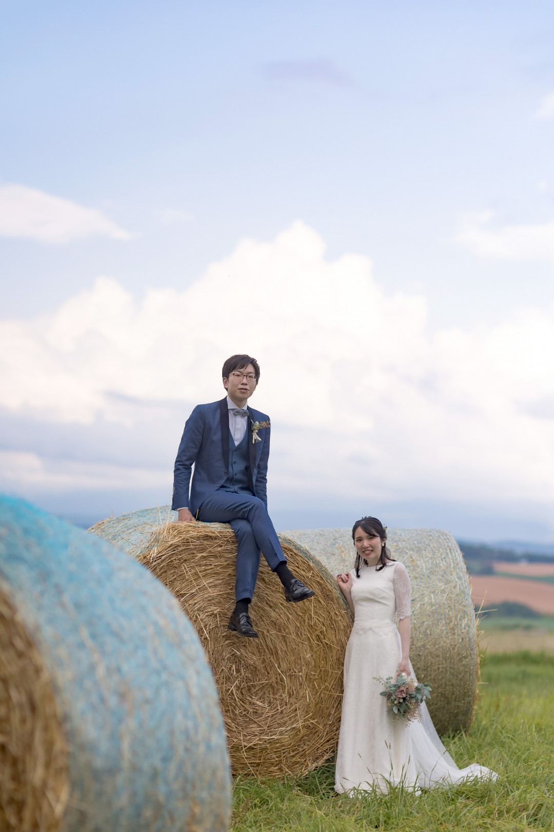 雄大な景色で、自然の恵を楽しみながら、牧草ロールに乗っての撮影や、馬や羊・可愛い動物たちとふれあいながらの撮影ができます。緑豊かな木々ががおふたりを美しく彩ります。「丘の町」美瑛町の風を感じながら幸せな思い出の1枚を残してみませんか。映画のロケ地としても有名なスポットです。プライベートファームのため、他の方の視線や写り込みを気にせず牧草地での撮影が可能です。