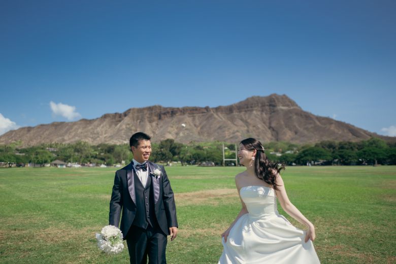 アメリカのハワイで美しい景色のフォトウェディング・結婚式前撮り。