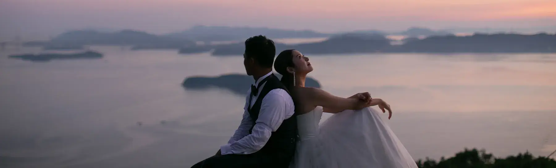 小高い丘の上に位置する牛窓オリーブ園は、瀬戸内海の多島美を一望できるビュースポット。園内には、ローマの丘や幸福の鐘など、まるで海外を思わせるようなスポットも。どこを撮っても絵になるロケーションは、特別なドレス姿がより一層引き立ちます。日中撮影はもちろんサンセットもおすすめ。